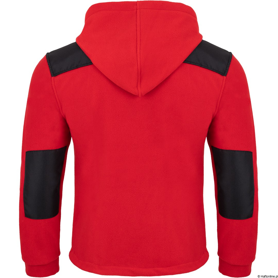 Polar z kapturem (~340‑360 g/m²), kieszenie z zamkami, wzmocnienia na barkach i rękawach. Funkcjonalny do pracy w terenie lub przy zmiennej pogodzie. Dostępne kolory / warianty: Black/Black, Camouflage, Coyote, Graphite/Black, Khaki/Khaki, Navy/Black, Royal Blue/Black, Red/Black